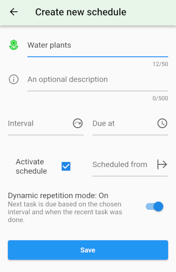 Schedules are useful for repetitive tasks like everyday tasks normaly are. If you want to “Water your plants” every 3 days create a schedule for that!