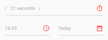 After starting you see the passed duration in the Duration field. All time-related fields become red and cannot be changed while tracking.